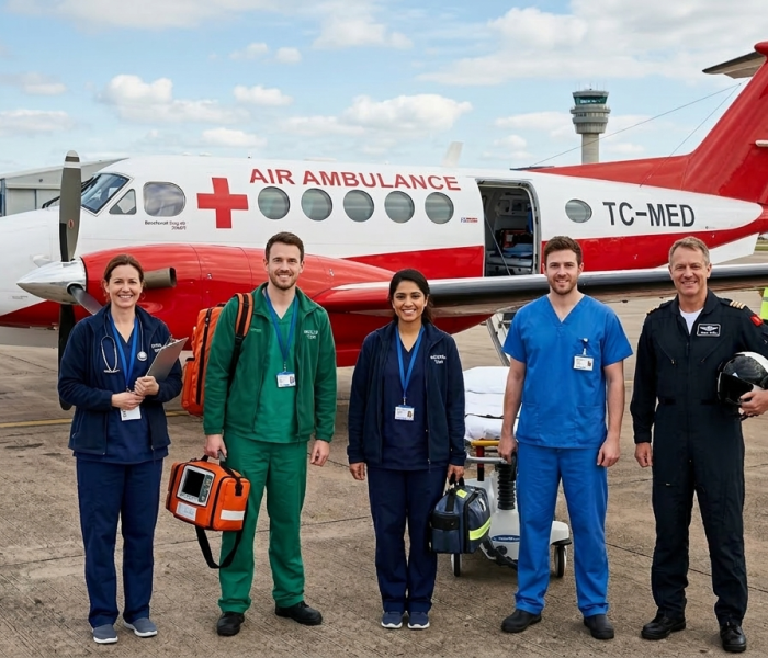 Air Ambulance hizmetlerimiz, özel olarak donatılmış uçaklar ile hızlı tıbbi ulaşım sağlayarak, durumu kritik olan hasta veya yaralı kişilerin profesyonel bir sağlık ekibi eşliğinde farklı şehirler ya da ülkeler arasında güvenli bir şekilde nakledilmesini sağlar